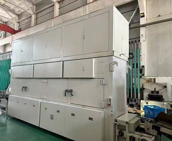 GHG02固化炉采用燃气供热。喷涂后的胚管,经输送船链传动,转移进入固化炉的不锈钢“C”型船。经船链的带动,在固化炉内随“C”型船循环至出料口。“C”型船将经过高温烘烤后的胚管倒出,落入出管输送链,胚管在固化炉内,经过一定时间的高温烘烤,附着在管壁的内喷涂液被烤干并牢牢附着在了管内壁上,从而完成了整个固化过程。